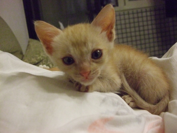 就這樣,我家多了一隻橘貓,叫做Orange,現在僅有50天左右,跟松鼠娃娃
